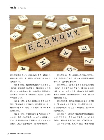 长 15%。2025 年前 10 个月,越南对非洲市场的木材 下降 2%。2025 年前 10 个月,越南对欧盟的木材及