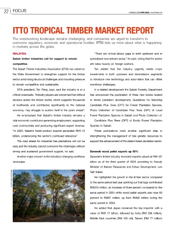 Sabah timber industries call for support to remain   specialised downstream areas,” he said, noting that the sector